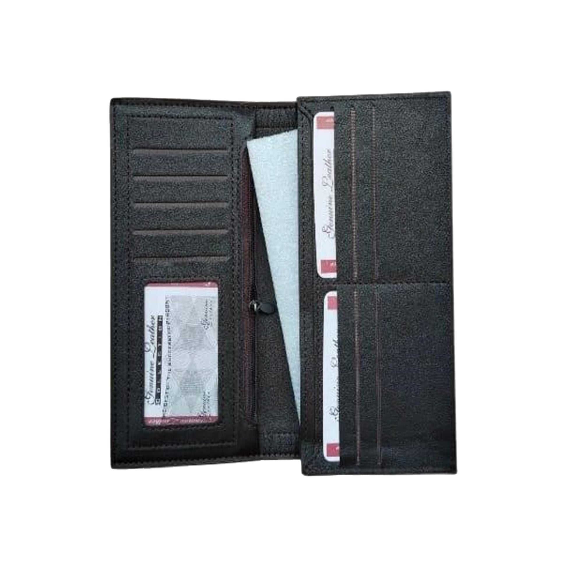 10+ card slots, 2 clear ID windows, and a zipper pocket for coins or receipts